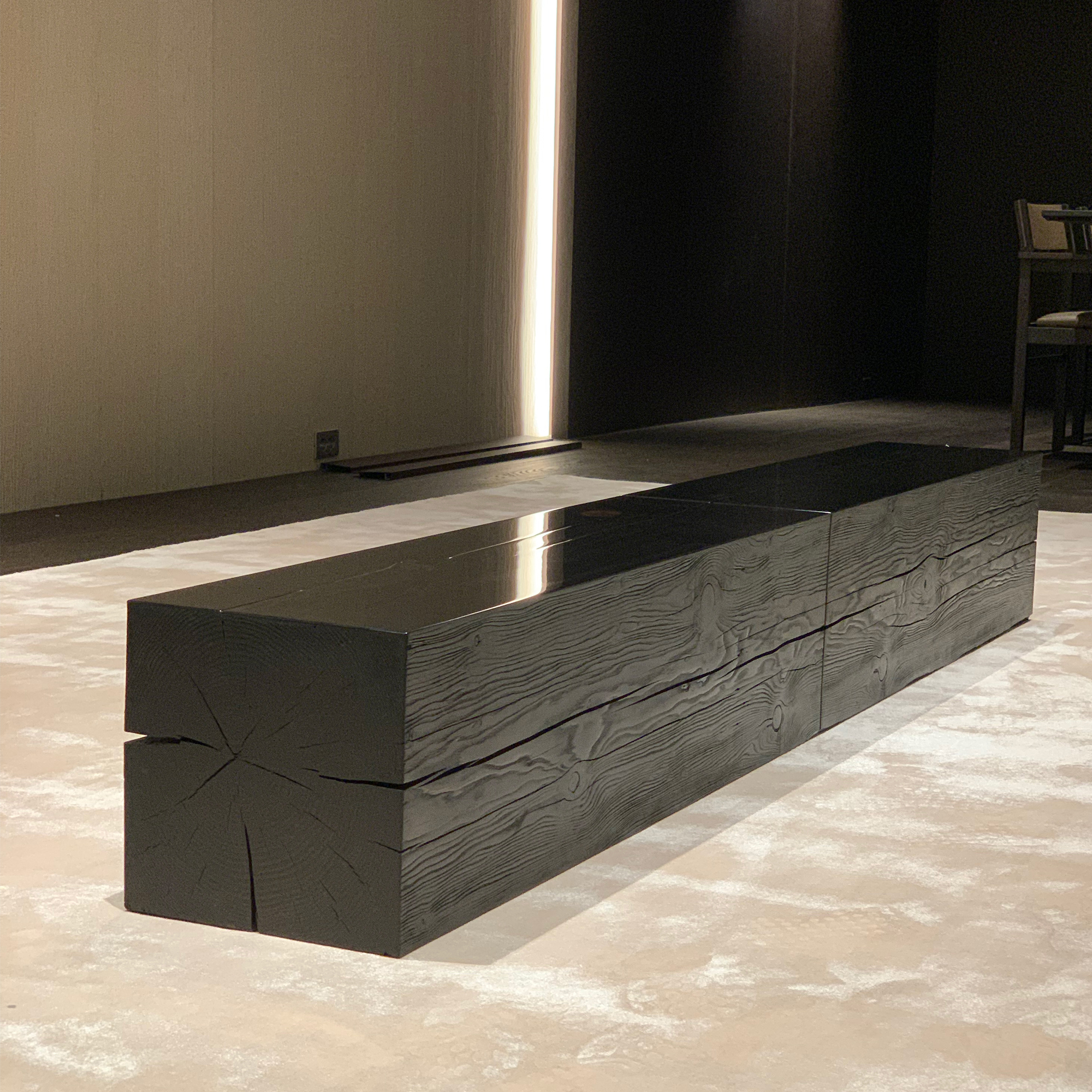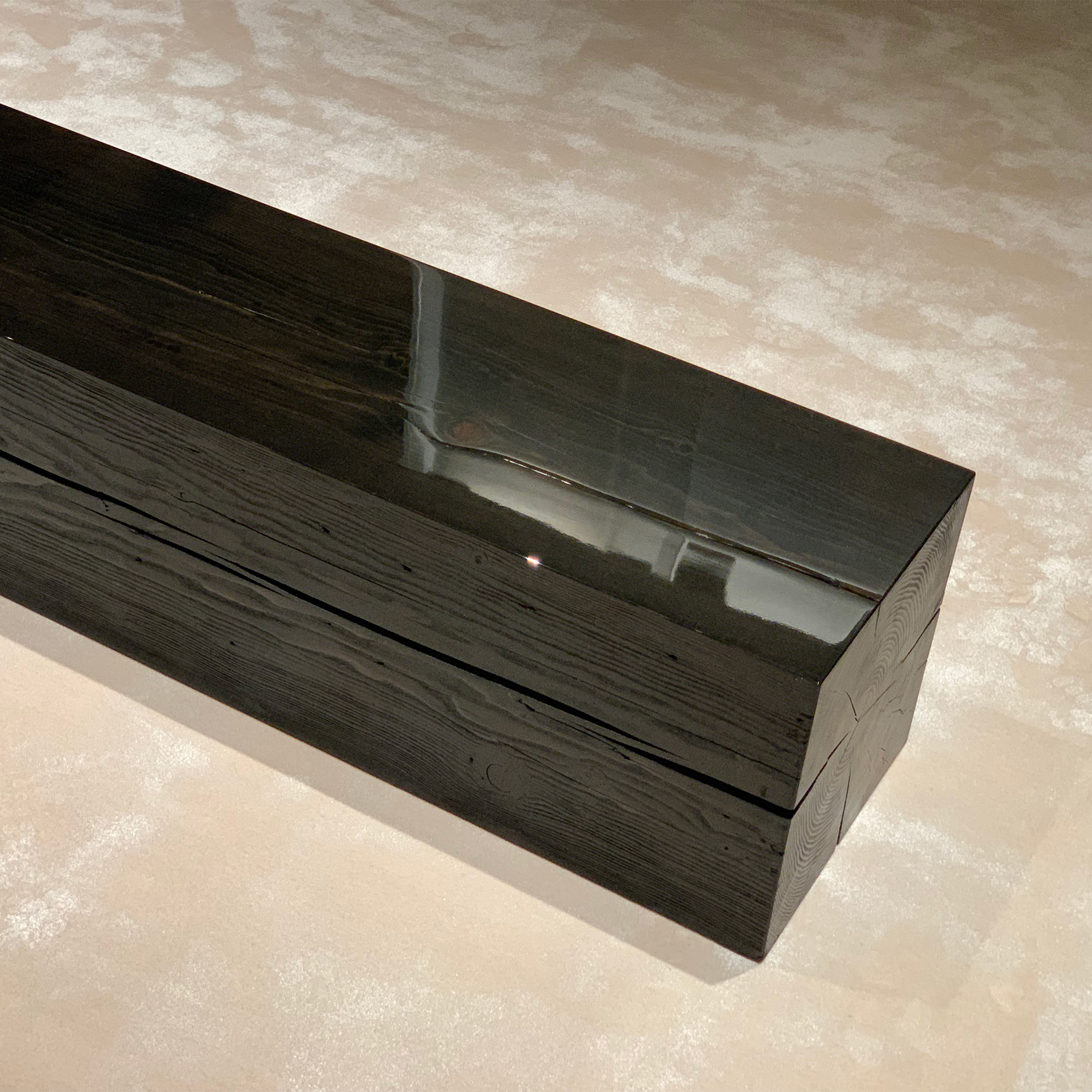 한국의 다디미를 모티브로 제작한 우드블럭. 투박한 원목을 재료로 자연 그대로의 아름다움을 그대로 유지하며, 한국 목가구의 고재 느낌으로 에이징하여 제작한 디스플레이 스탠드 또는 오브제. 러프한 마감과 대비되는 하이그로시 처리로 독특한 매력을 느낄 수 있다. 옛 정취가 묻어나고 동양적인 미감을 가진 오브제.
